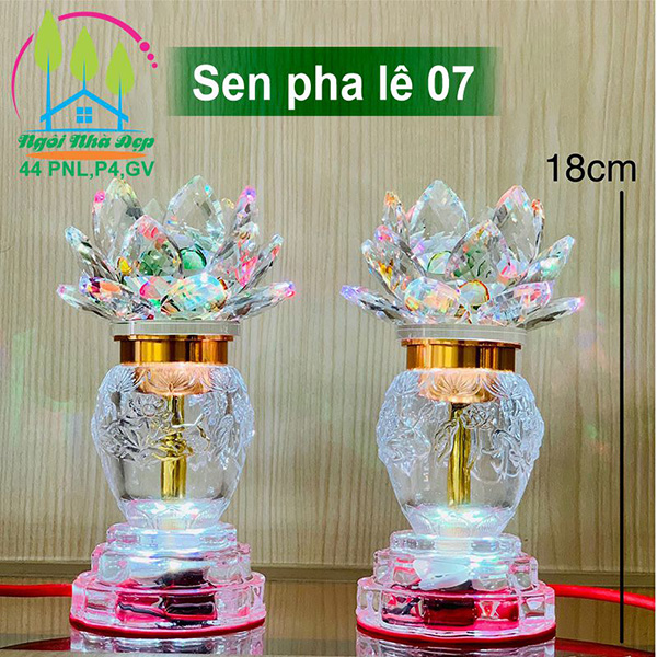 Thân đèn và hoa sen bằng pha lê