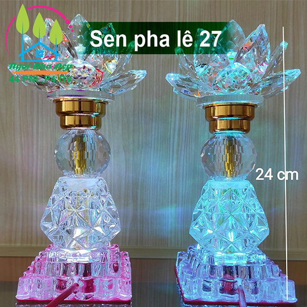 Thân đèn và hoa sen bằng pha lê