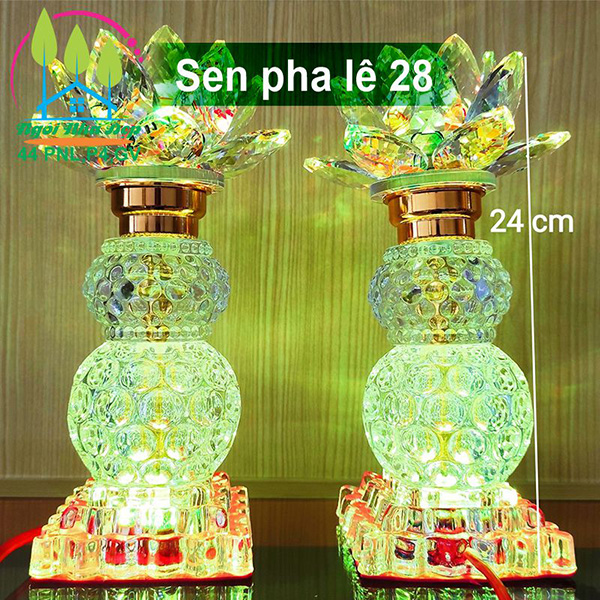 Thân đèn và hoa sen bằng pha lê