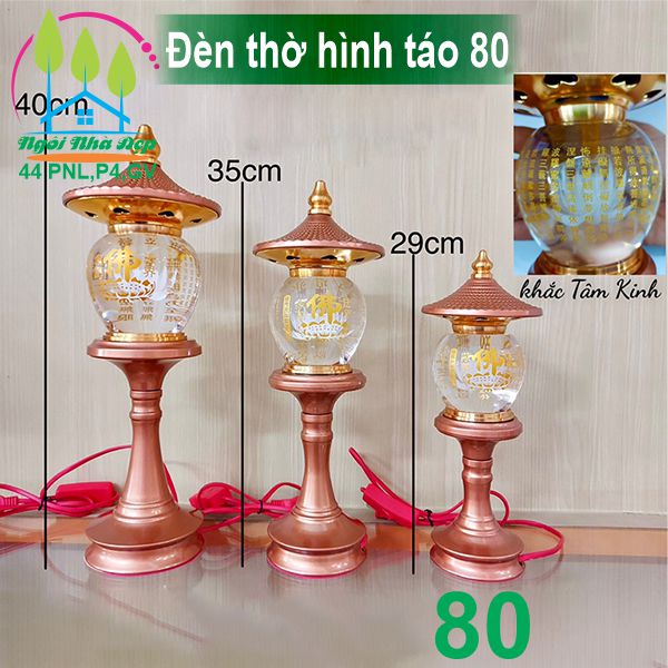 Cặp đèn thờ hình táo pha lê khắc tâm kinh cao cấp