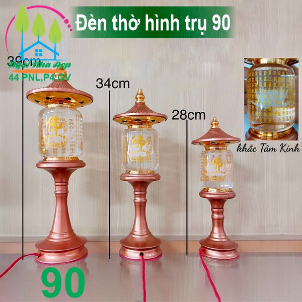 Cặp đèn thờ pha lê hình tháp trụ pha lê khắc tâm kinh