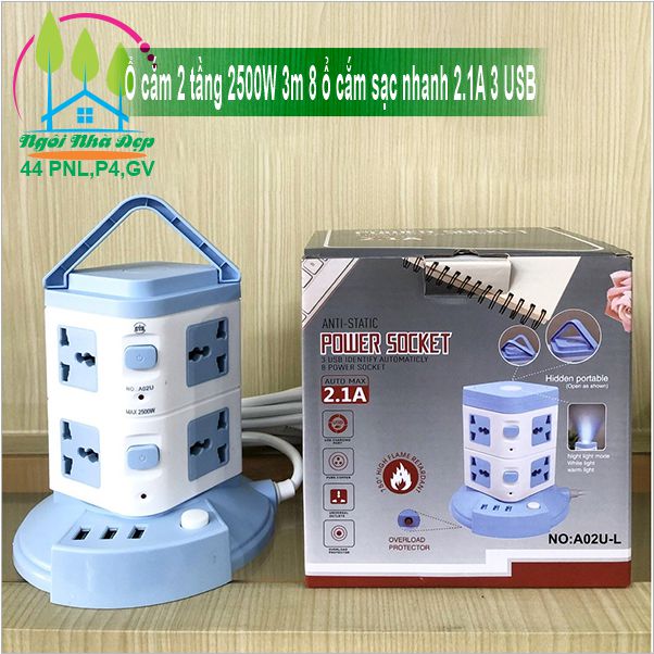 Thiết kế thông minh với 2 tầng dạng tháp đẹp mắt. Tích hợp 8 ổ cắm điện đa năng hỗ trợ 6 loại phích cắm khác nhau, đồng thời tích hợp 3 cổng sạc qua ổ cắm USB phổ biến với dòng sạc lên đến 2.1A.