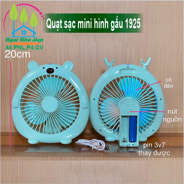 Quạt sạc mini hình gấu 1925