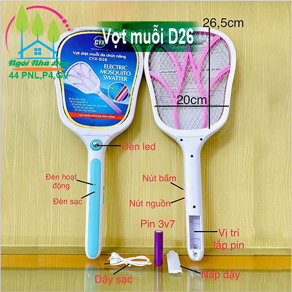 - Khi sử dụng để sử dụng diệt muỗi gạt công tắc lên giữa đồng thời dung ngón tay bấm và giữ nút bấm ,khi đó đèn led đỏ sáng lên báo hiệu vợt đã sẵn sàng diệt muỗi
