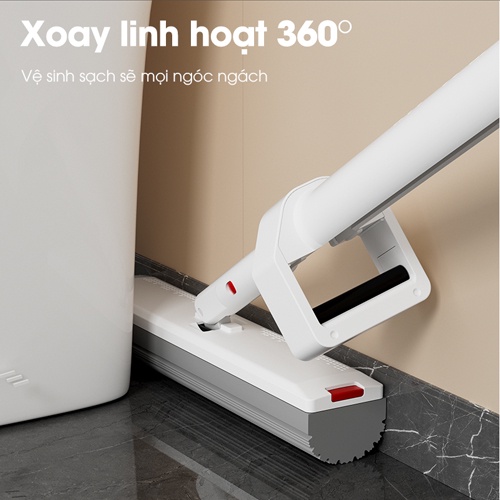 Thiết kế thông minh, có thể xoay 360 độ, nhẹ nhàng lau sạch mọi bụi bẩn trên sàn nhà hay mọi ngóc ngách, góc hẹp
