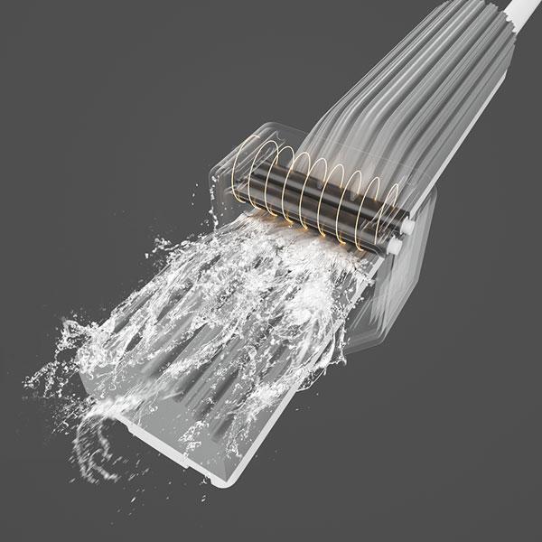 Sử dụng hệ rãnh trượt, chỉ cần kéo nhẹ tay đã có thể vắt khô bông lau