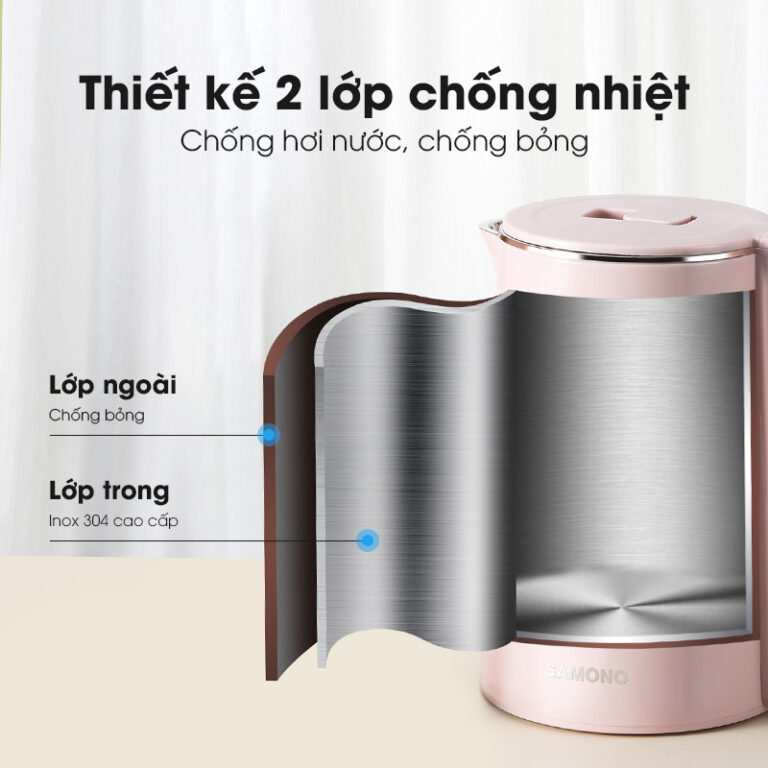 Thân ấm có 2 lớp chống nhiệt, bề mặt sáng đẹp, chống bỏng tay, cầm giữ thoải mái