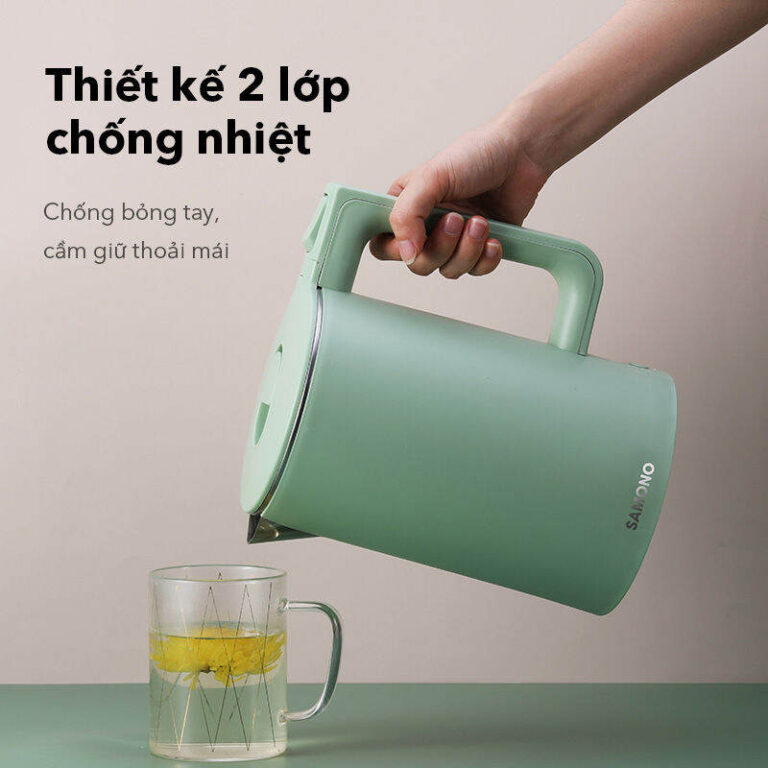 Thân ấm có 2 lớp chống nhiệt, chống bỏng tay, cầm giữ thoải mái