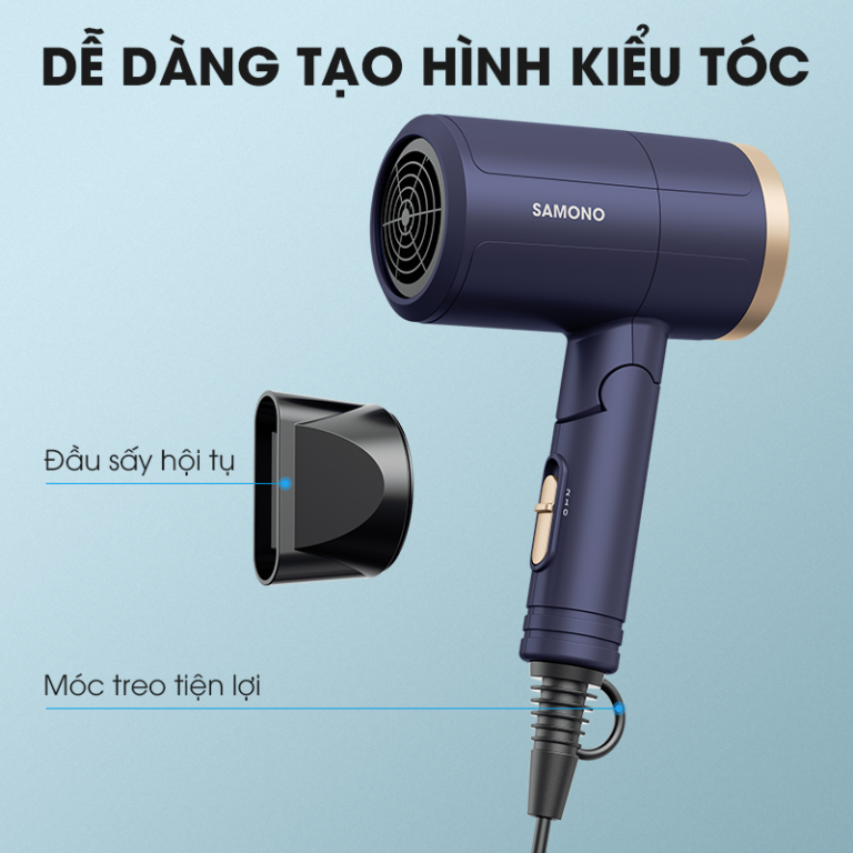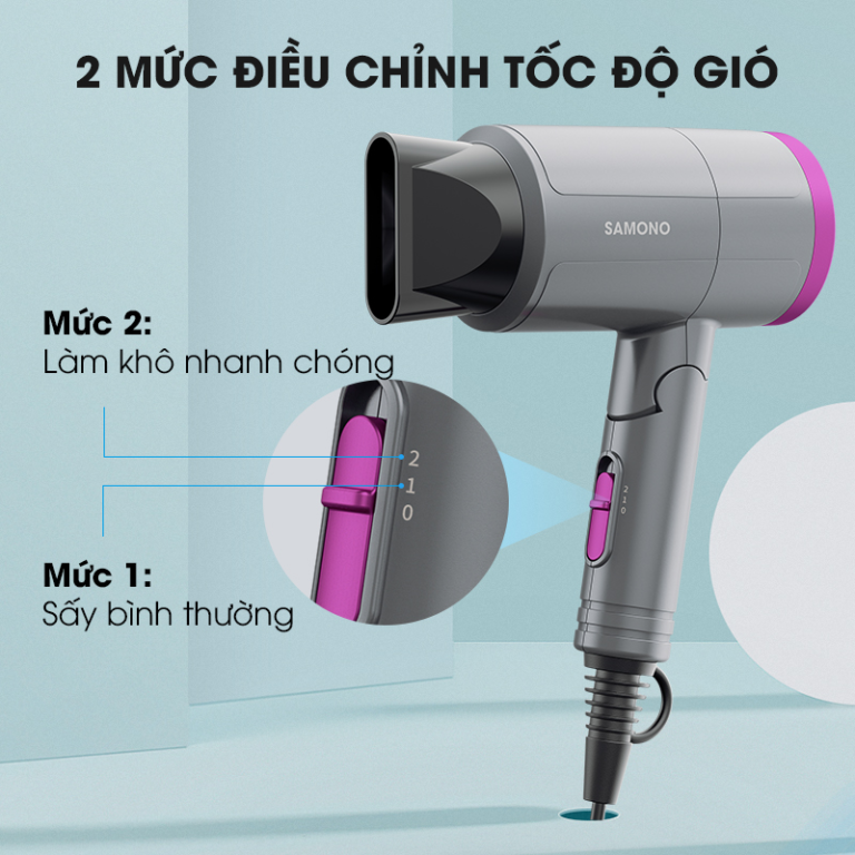 Có 2 tốc độ sấy mạnh và vừa, điều khiển dễ dàng bằng công tắc ngay trên tay cầm
