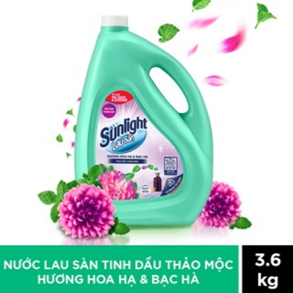Nước lau sàn Sunlight tinh dầu thảo mộc hoa hạ bạc hà can 3.6kg